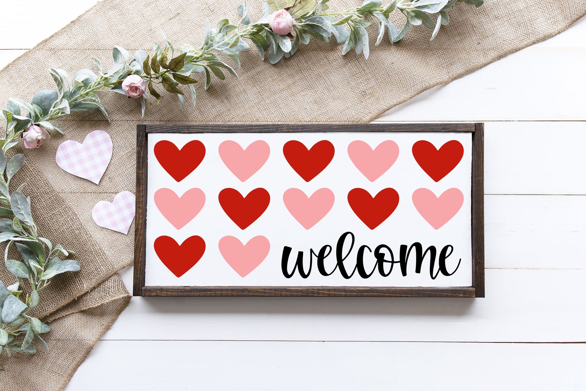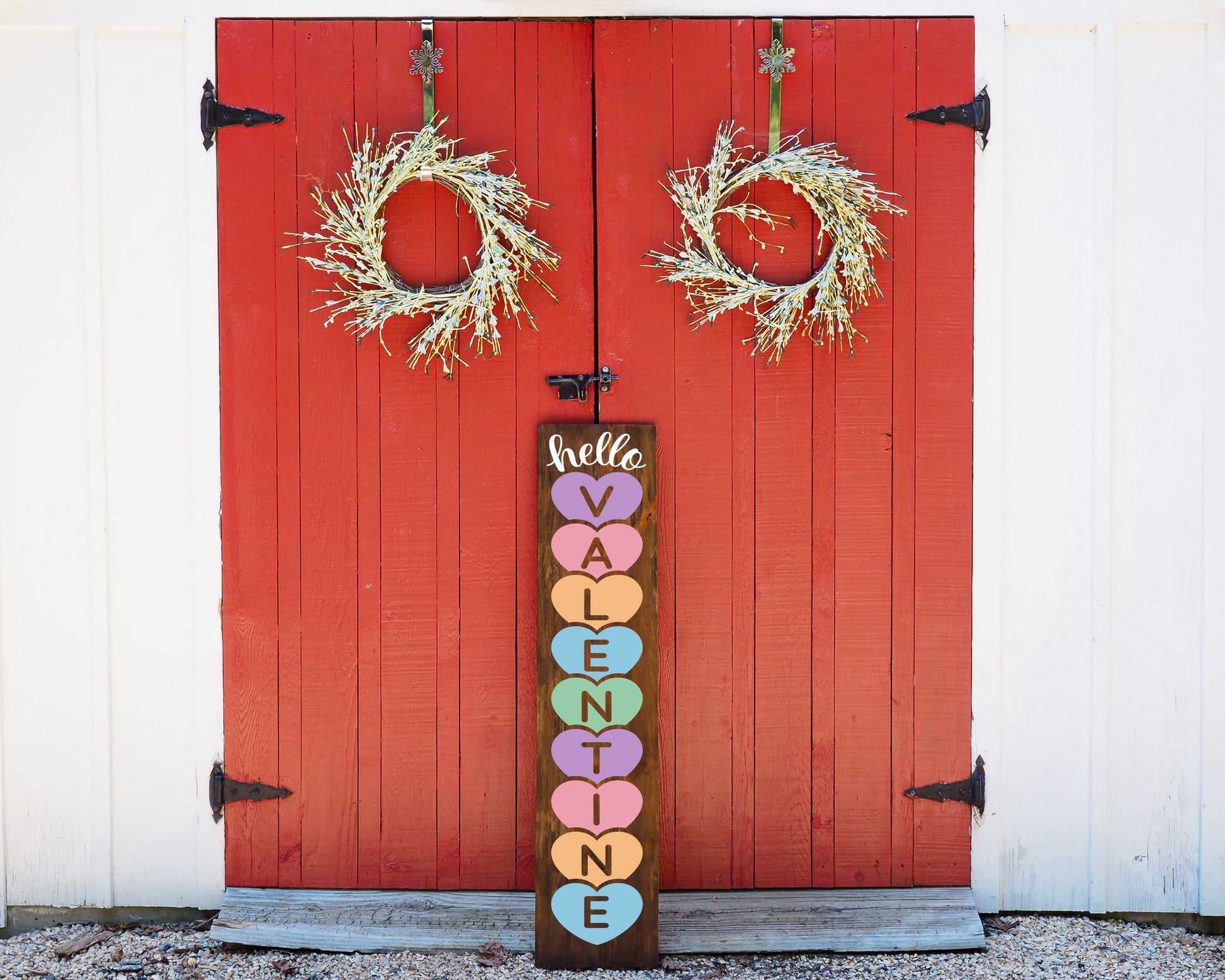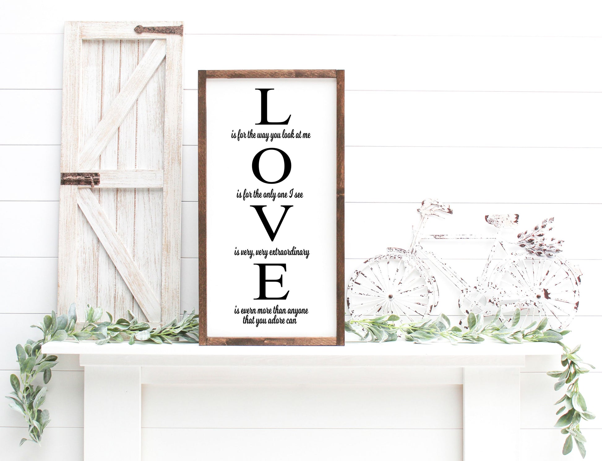 Small home shutter, single plank are all 32". Large Shutters & Oversize Planks are 48" tall. Centerpiece boxes are 32", rounds are 18", small framed signs are 12x24", gallery signs are 12x16", skinny gallery signs are 6x18", framed squares are 12x12, Large framed squares are 18x18"