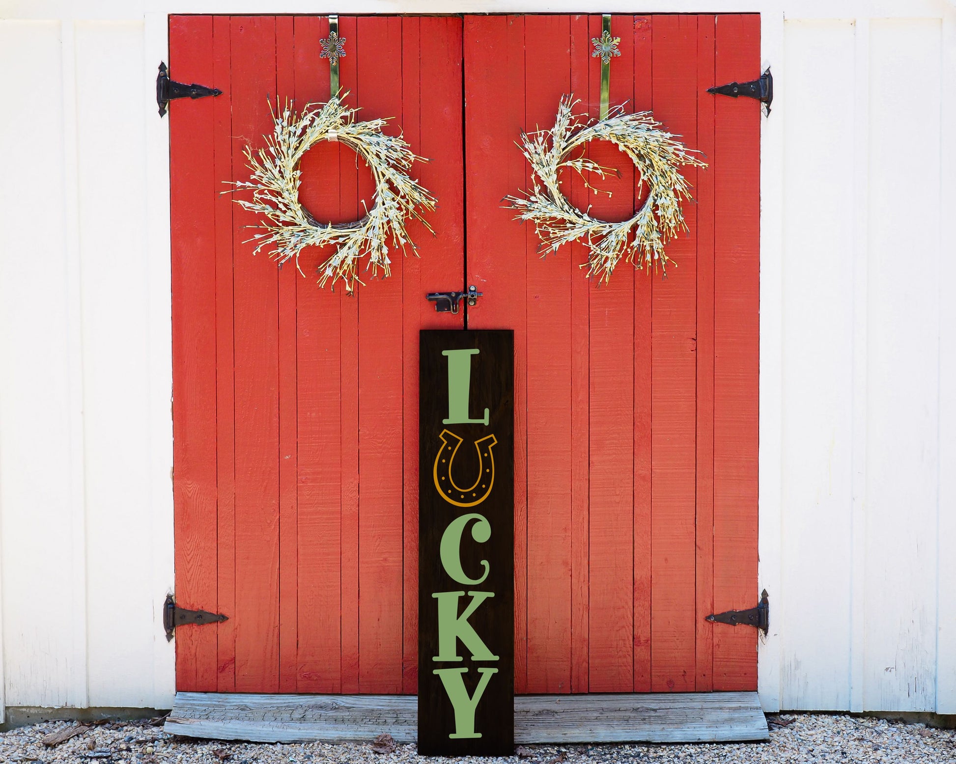 Small home shutter, single plank are all 32". Large Shutters & Oversize Planks are 48" tall. Centerpiece boxes are 32", rounds are 18", small framed signs are 12x24", gallery signs are 12x16", skinny gallery signs are 6x18", framed squares are 12x12, Large framed squares are 18x18"